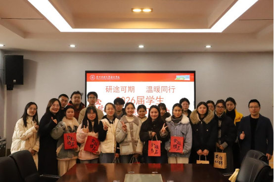 岁末将至,研途升温,2026年全国硕士研究生招生考试开考在即,为助力我们2026届考研学子提振信心、舒缓压力, 2025年12月18日中午,我们于D406会议室开展“研途可期,温暖同行”考研慰问活动。学院党委副书记裴凡苗、副院长卫松、团委副书记王素霞与2026届考研学子齐聚一堂,以温情为盾,共赴一场关于梦想与坚持的暖心之约。 考研慰问活动现场 活动伊始,裴凡苗副书记首先对同学们在备考过程中展现出的勤奋刻苦精神表示肯定,并...