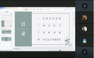 此次考核六个小组同时开展,会议由记录秘书主持,每个小组组长老师宣读相关考核细则后每个学生轮流汇报。汇报结束后每名老师根据培养方案、考核标准、学生汇报情况提问,详细了解考核其完成各项培养任务的情况。最后针对考核组的问题,学生当场回答,考核组老师给予评价、指导并给出相关的意见建议。