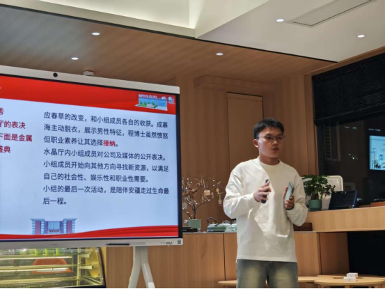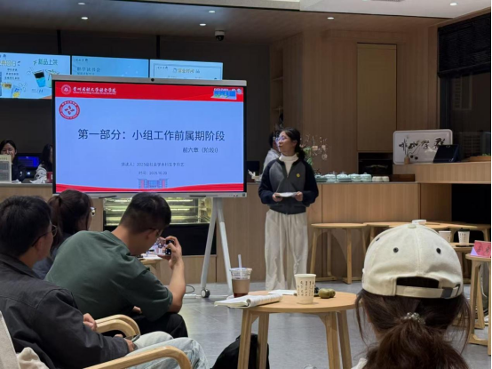 领读环节,李羚艺首先梳理了全书的内容逻辑和框架,并且介绍了小组如何形成的过程。王念和李思涵介绍并讨论了小组工作展开的细节,包括场地、服装、对话、称呼、小组契约、角色扮演等环节。于啸林则是根据书中的故事情节提出三个值得思考的问题,即“如何理解性”、“如何面对死亡”、“如何面对冲突”。梁义彻对全书进行了总结,并分享了他的学习感悟。