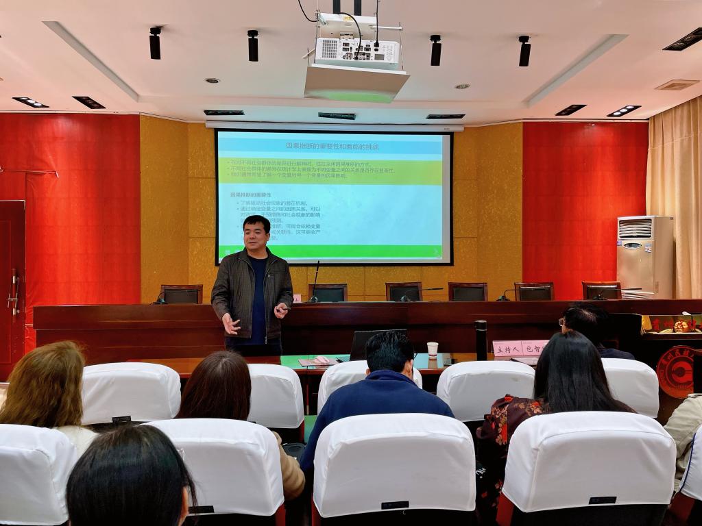 焦教授有着丰富的社会学理论教学经验,尤其关注社会学理论前沿,并在研究方法上颇有造诣,在讲座讲授过程中,焦教授结合了大量日常生活中的案例进行阐述,其风趣幽默、深入浅出的授课方式,使在场的师生受益匪浅。互动提问环节,我们在读博士生及青年教师就社会学因果变量、倾向值计算等相关学术问题,进行了现场请教与交流。焦教授还鼓励我们学生积极报考中央民族大学硕博研究生,讲座在热烈的掌声中圆满结束。