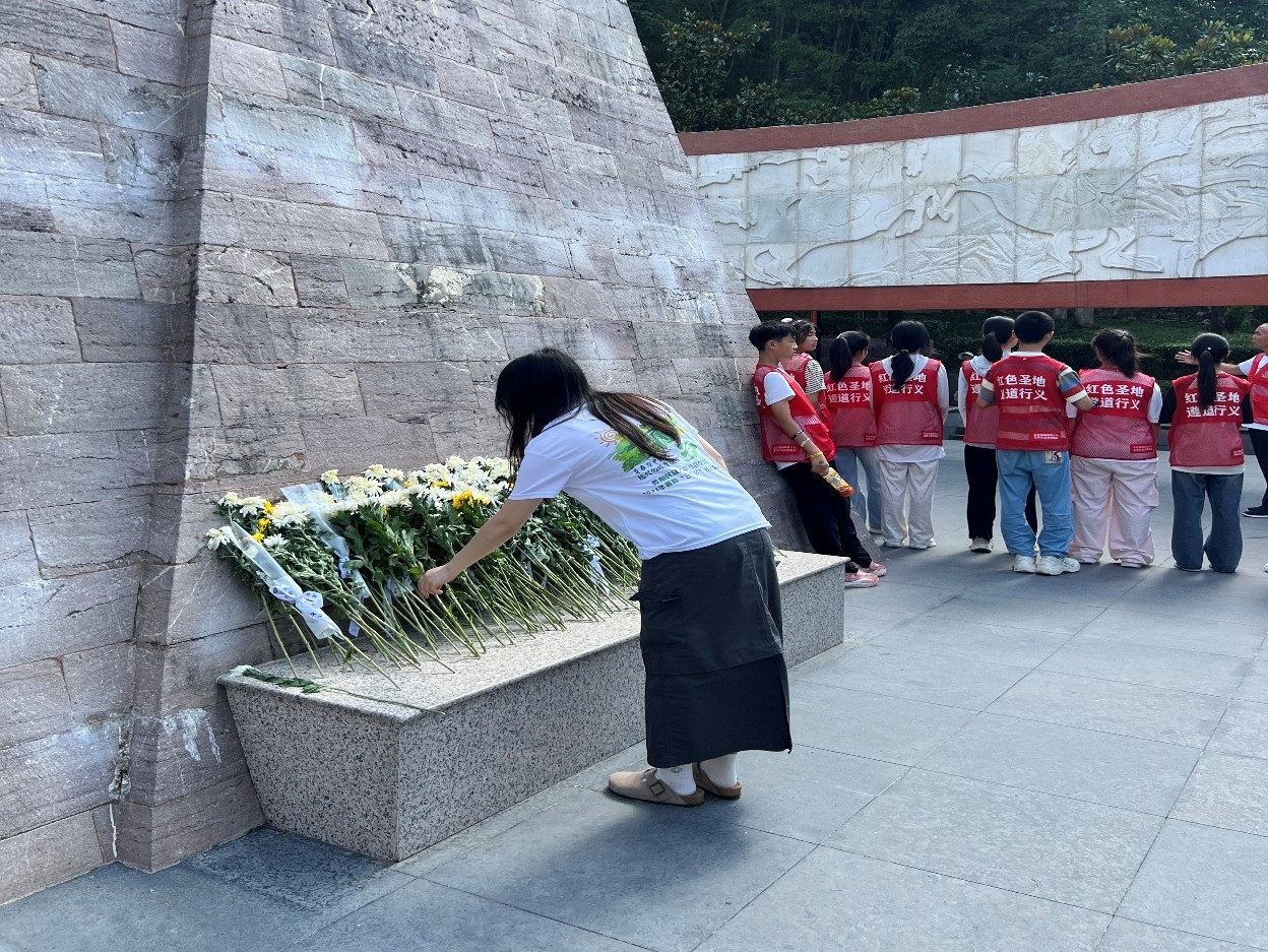 18日上午,实践团怀着崇敬的心情来到红军山。在烈士纪念碑前,队员们敬献了鲜花,向革命先烈们默哀致敬,表达了对先烈们的深切缅怀和崇高敬意。