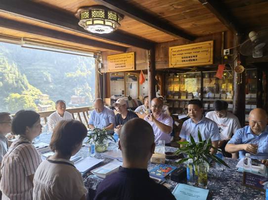 此次工作坊活动分为现场考察与交流座谈两个阶段。在现场考察阶段。我们王国勇、杨胜勇与专家们走村串寨,就西江苗寨的产业发展、文化传承和社会治理等内容进行了详细地考察,全面了解了西江苗寨在乡村振兴所取得的成就以及在疫情时代所面临的挑战。