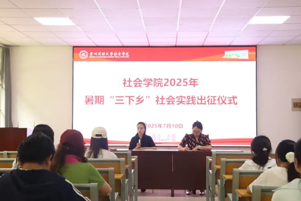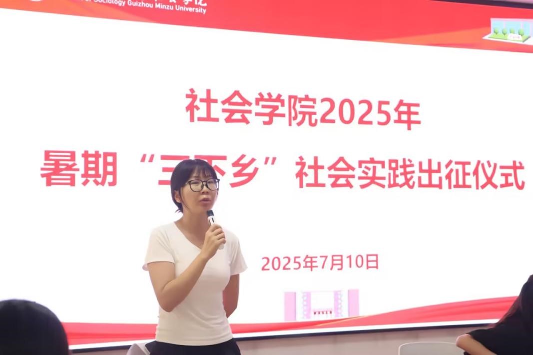 学院党委副书记裴凡苗向即将奔赴基层参与社会实践的师生们表示亲切的问候并给予肯定。她指出,学院高度重视实践育人工作,暑期“三下乡”社会实践活动是共青团的育人品牌,学院今年实践队伍规模扩大至17支队伍120余人,希望同学们在实践中提升素质、强化能力、增长才干,同学们要坚定不移听党话、跟党走,撸起袖子、甩开膀子、扑下身子、迈开步子、干出样子,在艰苦环境中砥砺品质,在联系实际中寻找差距,在深入群众中温暖人心,在更广阔的基层释放青春活力,立志做有理想、敢担当、能吃苦、肯奋斗的新时代好青年,为推进中国式现代化的贵州实践贡献青春力量。裴凡苗就进一步做好今年暑期“三下乡”社会实践活动提出四点要求:一是胸怀“国之大者”,在基层淬炼中坚定信仰;二是践行“知行合一”,在服务奉献中增长才干;三是,永葆“为民初心”,在实干担当中彰显价值;四是严守“安全底线”,在团结协作中展现风采。希望同学们将实践与学术研究、各类赛事相结合,形成工作闭环,提升活动影响力。