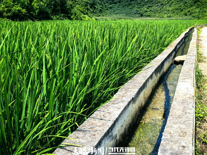 提质改造的水田泛着粼粼波光,灌溉渠里清水汩汩流淌,广阔稻田里满是沉甸甸的稻穗……
